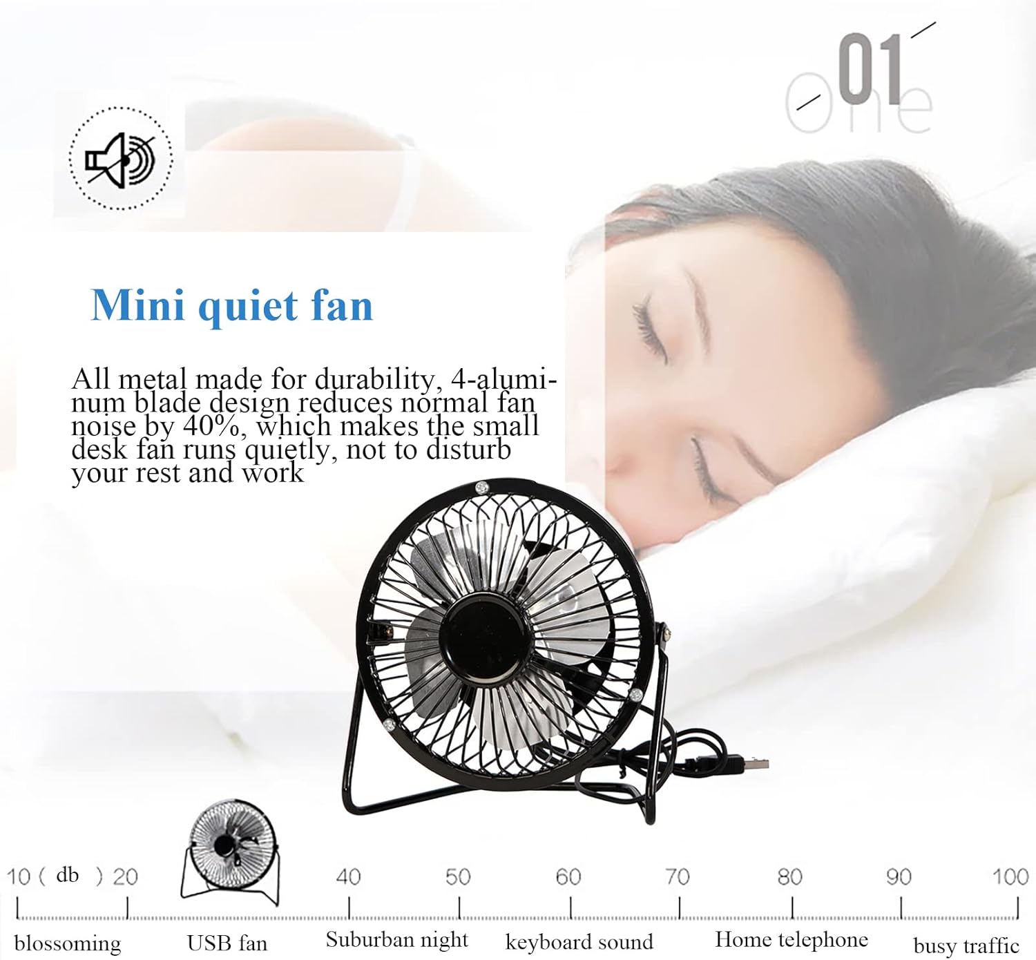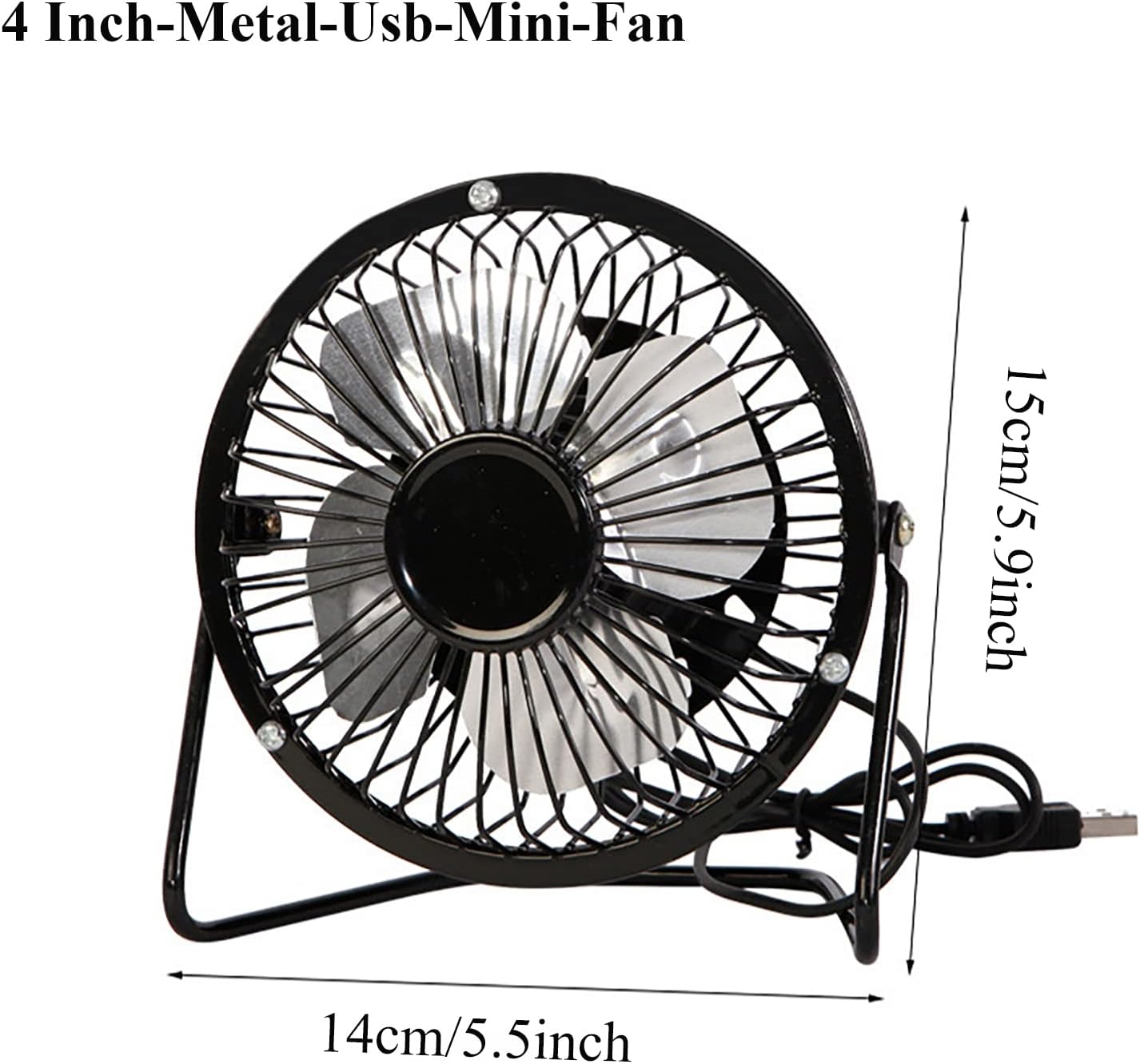 Sokelinn-six 4 Inch Small Usb Desk Fan, Metal Mini Quiet Personal Cooling Fan for Home Office Car Travel (Black)