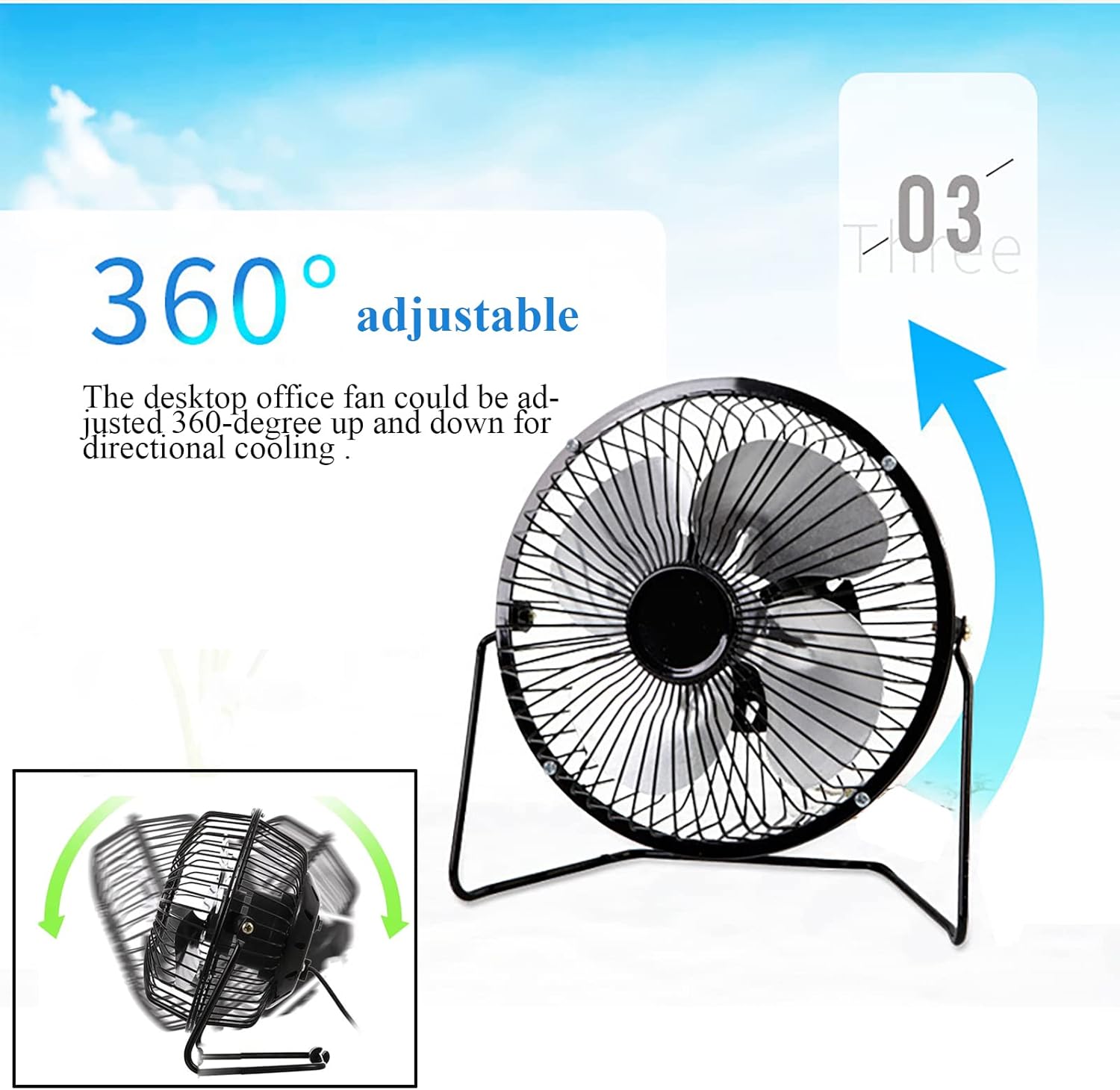- 360-degree adjustable tilt for customizable airflow