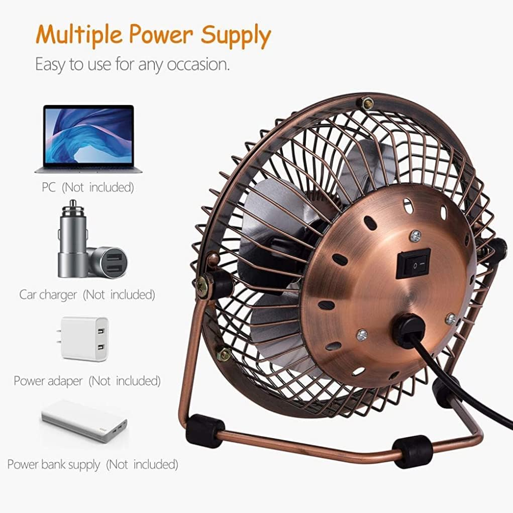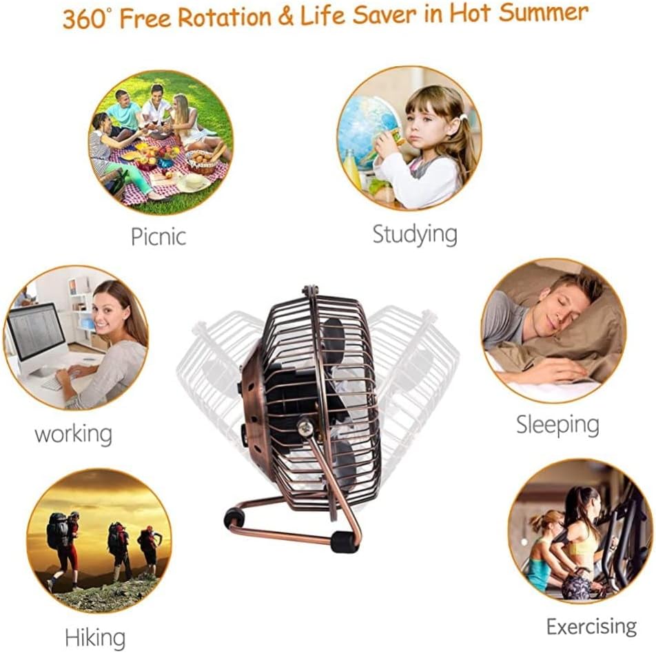 USB Desk Fan 4 Inch Mini Portable Ultra Quiet Cooling Fan Small Quiet Powerful Metal Fan 360°Rotation for Desktop Office Bed Travel USB Powered (150 * 150 * 80mm) Household Products