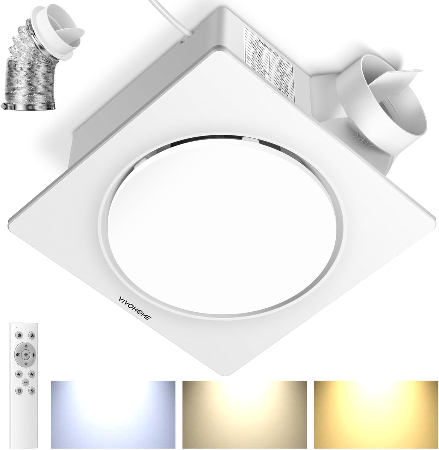 The VIVOHOME AutoFlow Bathroom Exhaust Fan is designed for efficient ventilation and energy savings. It features a brushless EC motor that can reduce energy consumption by up to 50%. This fan automatically detects humidity levels, ensuring optimal airflow and comfort in your bathroom. With a smart remote, you can easily adjust the fan speed and choose from three different light colors to suit your mood.